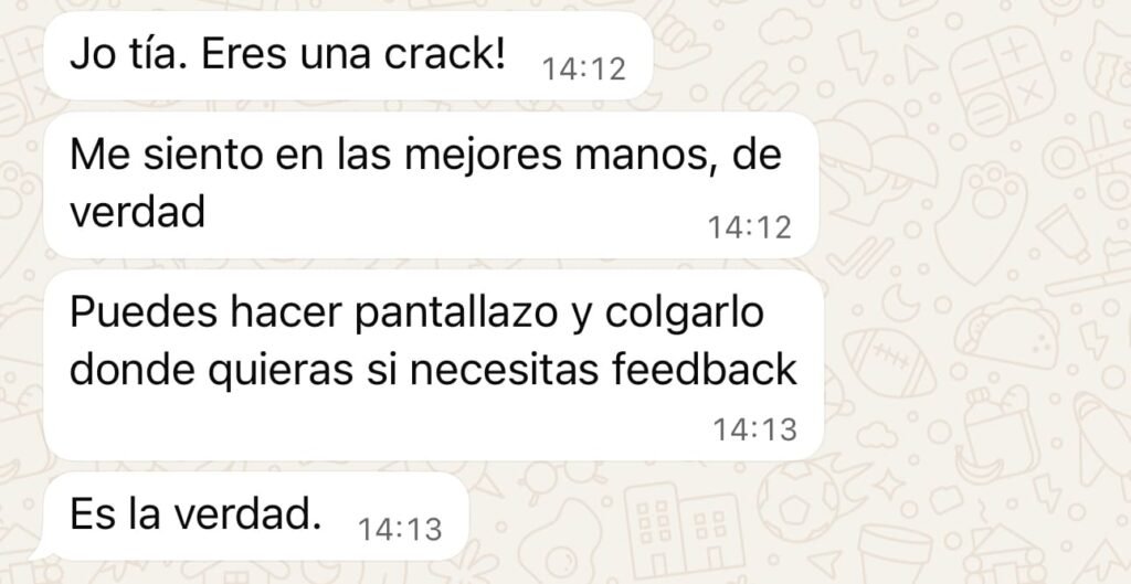 Cada mes tenemos una sesión en directo de 1 hora donde resuelvo dudas, analizo casos reales y doy feedback personalizado.